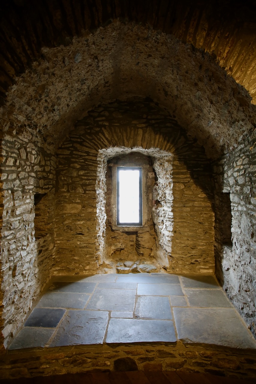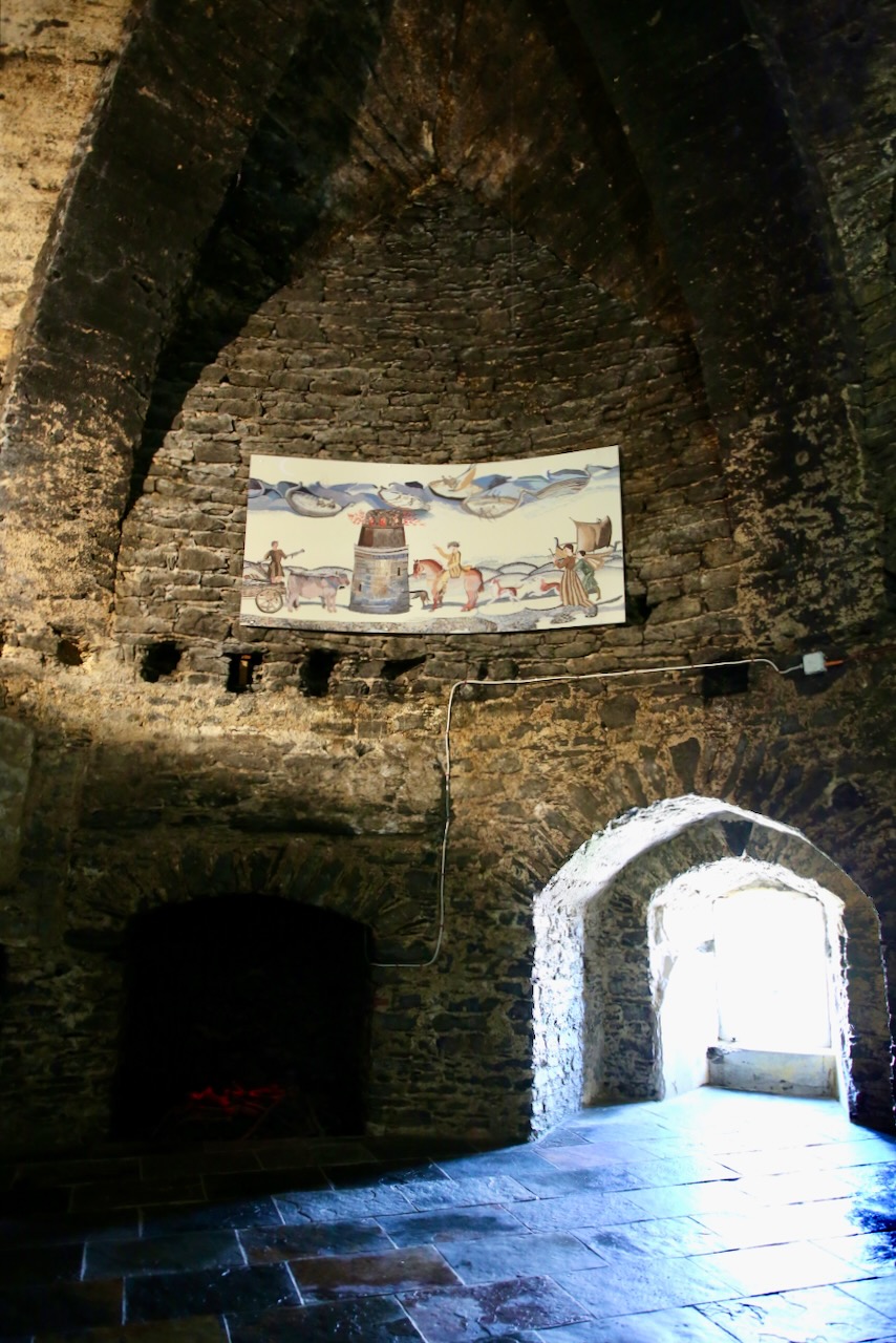 We’re taken inside to see the old Fresnel lens used at Blackrock from 1974 until 1999 when it was replaced with solar power as Ireland moves towards more renewable energy and a reduction for the need of helicopters and ships to help with upkeep for remote offshore locations. As we ascend, we pass built-in shelves, garderobes (toilets in the walls), and large fireplaces. I’m almost sure I can see Wales from here but it could just as easily be more Irish coastline. We’re in the middle of taking smile and frown face selfies when our guide disagrees and does a mini photoshoot of us smiling.