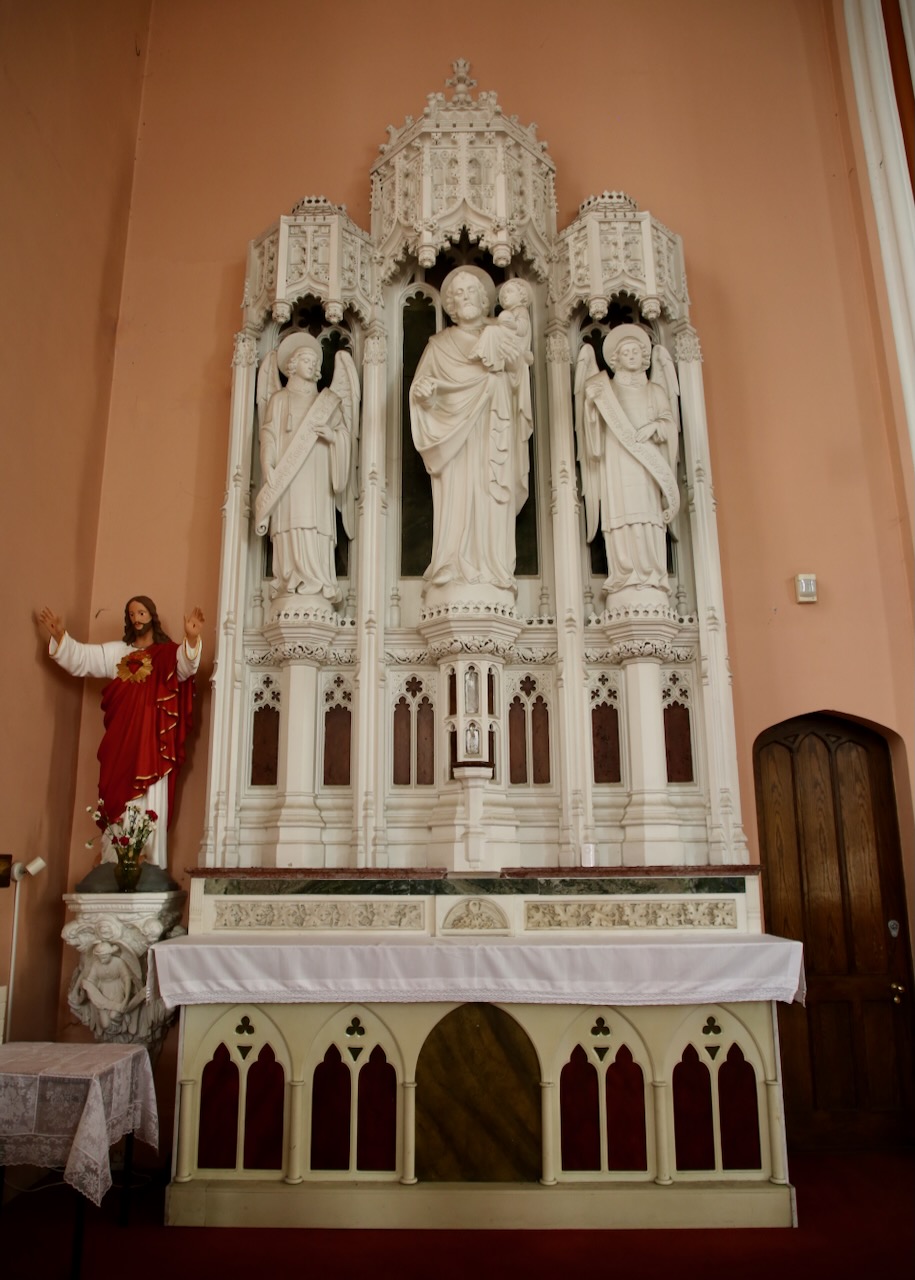 Not ready to get back in the car, we head southwest on foot and find ourselves quietly appreciating the inside of St. John’s Presbytery. I’m surprised more homes don’t have stained-glass windows as perhaps they want separation from the church or don’t want to pay the $90 – $250 per sq. ft. for privacy with natural lighting or I just haven’t spent enough time in communities with that budget. This congregation was able to raise funds to restore the windows in 2007 that were built in 1850. It starts to sprinkle on the way to the car park and we learn that the town name Waterford is believed to come from old Norse meaning fjord of the rams (sheep export) or windy fjord (a safe harbor).