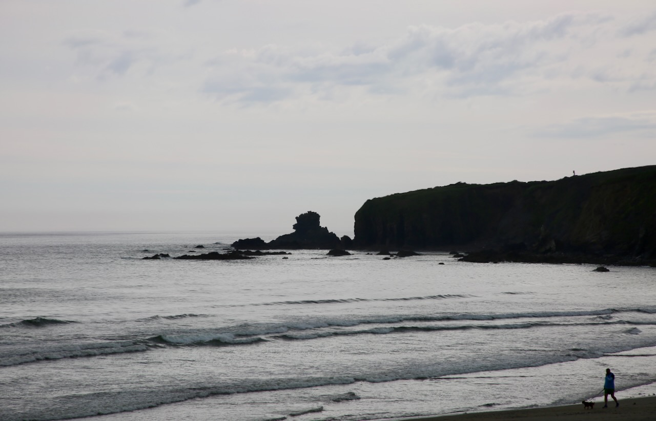 There is minor flooding at an intersection which slows cars in our lane but isn’t dampening travel plans for cars going the other way. I had plans to go to the Butter Museum and learn about the success of Kerrygold internationally, one of the top three sold in the US, but we were about an hour and a half away when they closed at 4 pm. Instead, we’ll stop at Bonmahon, a historic mining village, along the Copper Coast UNESCO Global Geopark. The visitor centre is closed and the small parking lot could just be a roadside rest stop. We continue to the beach, where horseriding is allowed between 5-11 am between May and Sept.