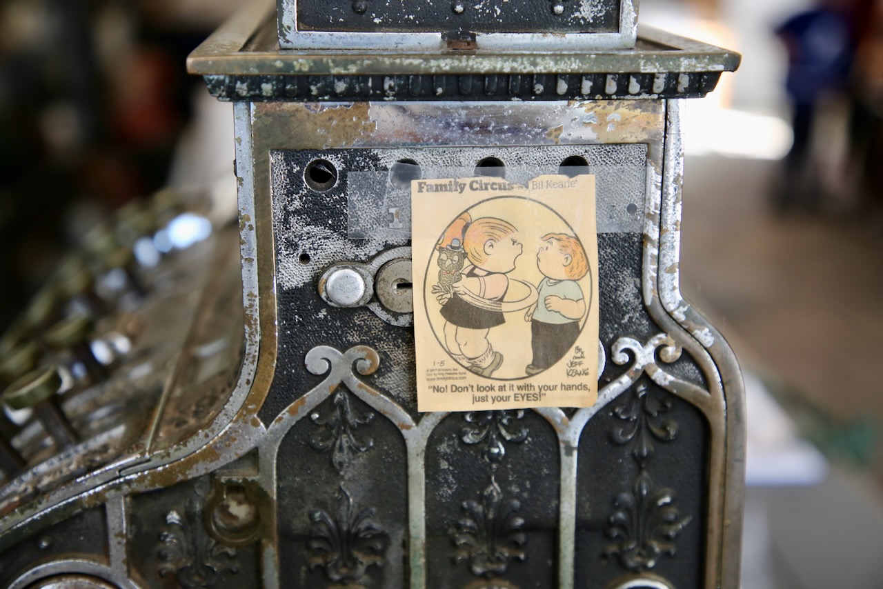 There’s a bright orange caboose (from the Seaboard Coast Line), an idea in the 1840s to house the engineer, fireman, conductor, and two brakemen who would manually stop each car as the train slowed to a stop. In the 1870s, those men would use flags to signal the engineer. Bright painted steel replaced the weaker and more flammable wooden crummy in the 1920s. With the invention of radios and computers, the way cars are becoming extinct.