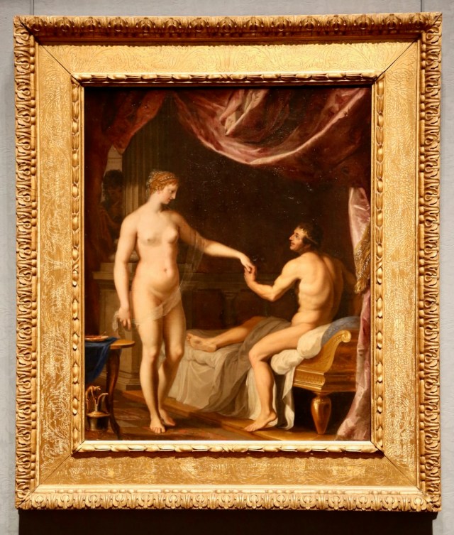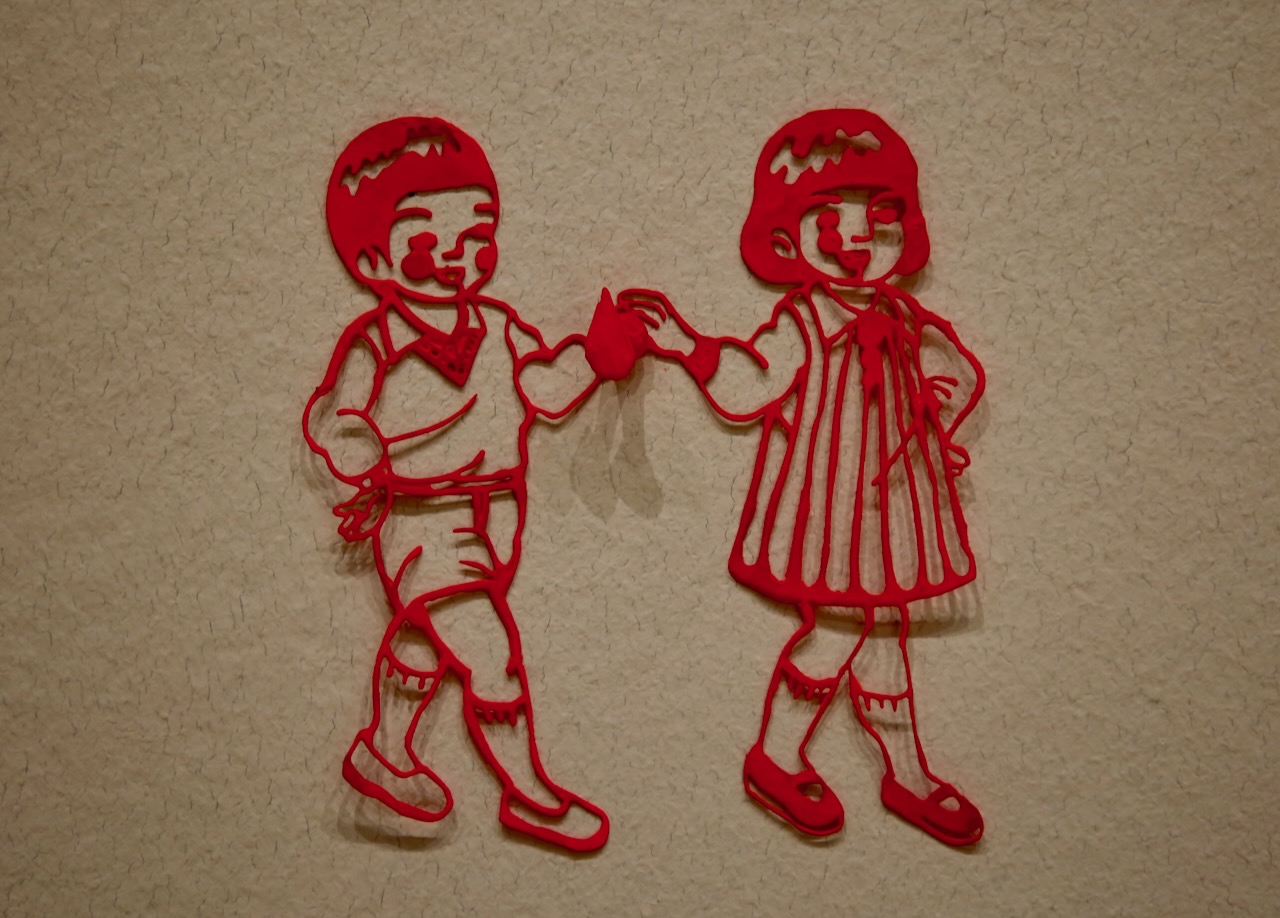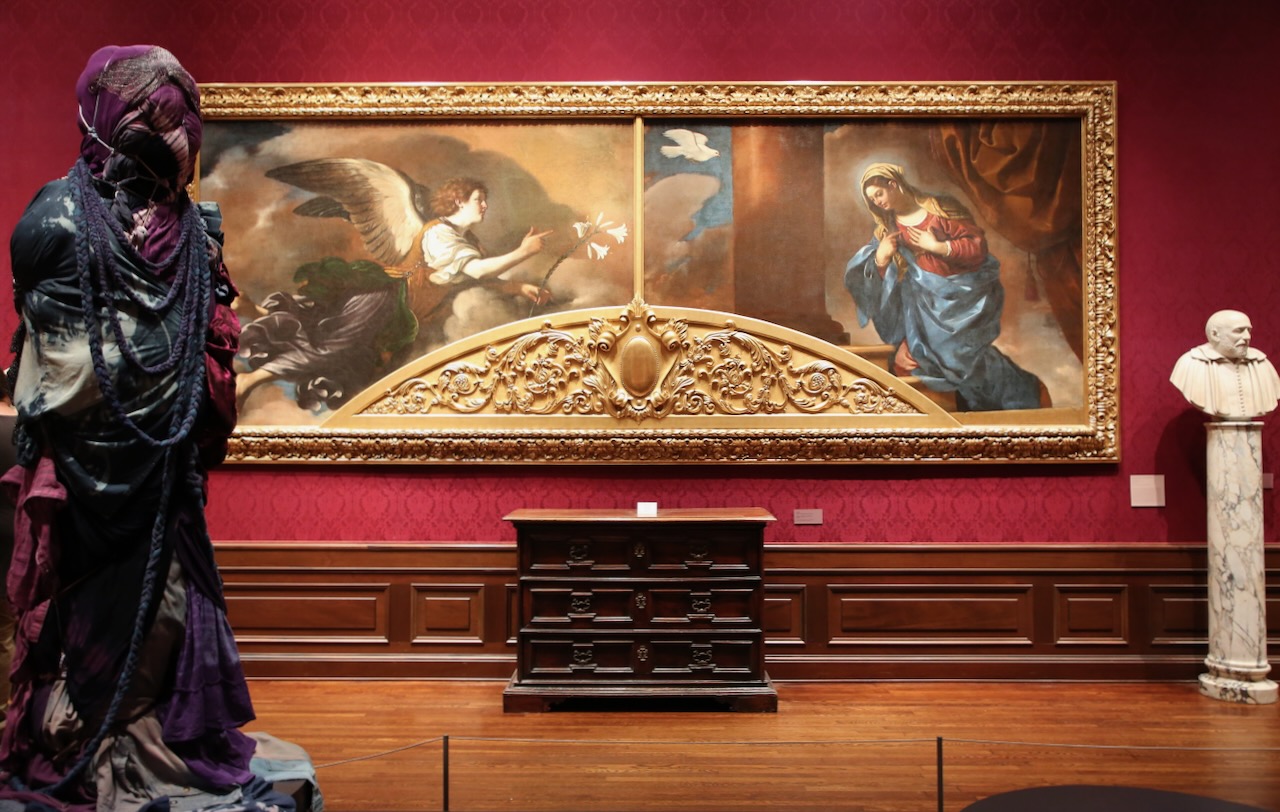 Mickalene Thomas prefers to focus on the feminist movement with her rhinestone portrait from 2009 paired with a soundtrack from 1957 based on a speech given in 1851, encapsulating an idea of womanhood and how perception of women’s rights has changed over the generations. Jake Troyli takes on the issue of commodification of Black and Brown bodies, exploring masculinity and identity. His oil on canvas shows a brown, headless, and naked body with an older man in a suit clinging in despair. We explored the tiered courtyard before making our way through the Dwarf Garden.