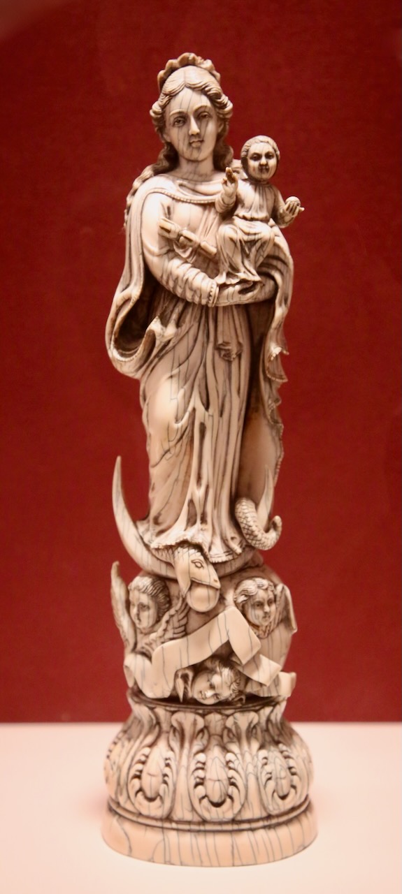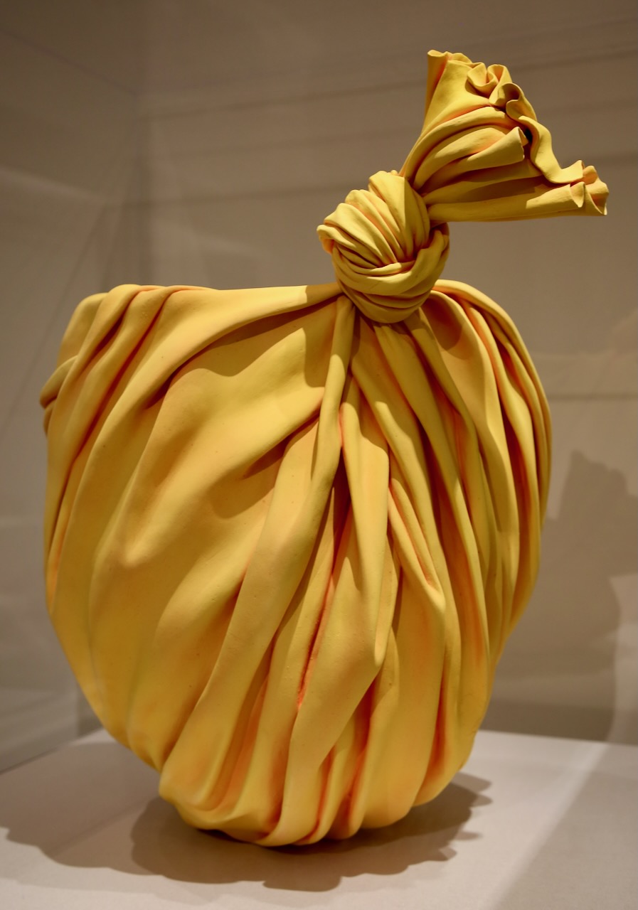 We enter the Museum of Art via the Searing Wing. There is a painting by Jake Fernandez, who uses interlocking, wooden bas-relief panels to portray his landscapes, which appear to shift. Carol Mickett and Robert Stackhouse are more focused on water and social change, so their art is a large-scale map of the waters of Florida. These artists are part of the Skyway 2024: A Contemporary Collaboration that celebrates recent artwork from the Tamba Bay region.