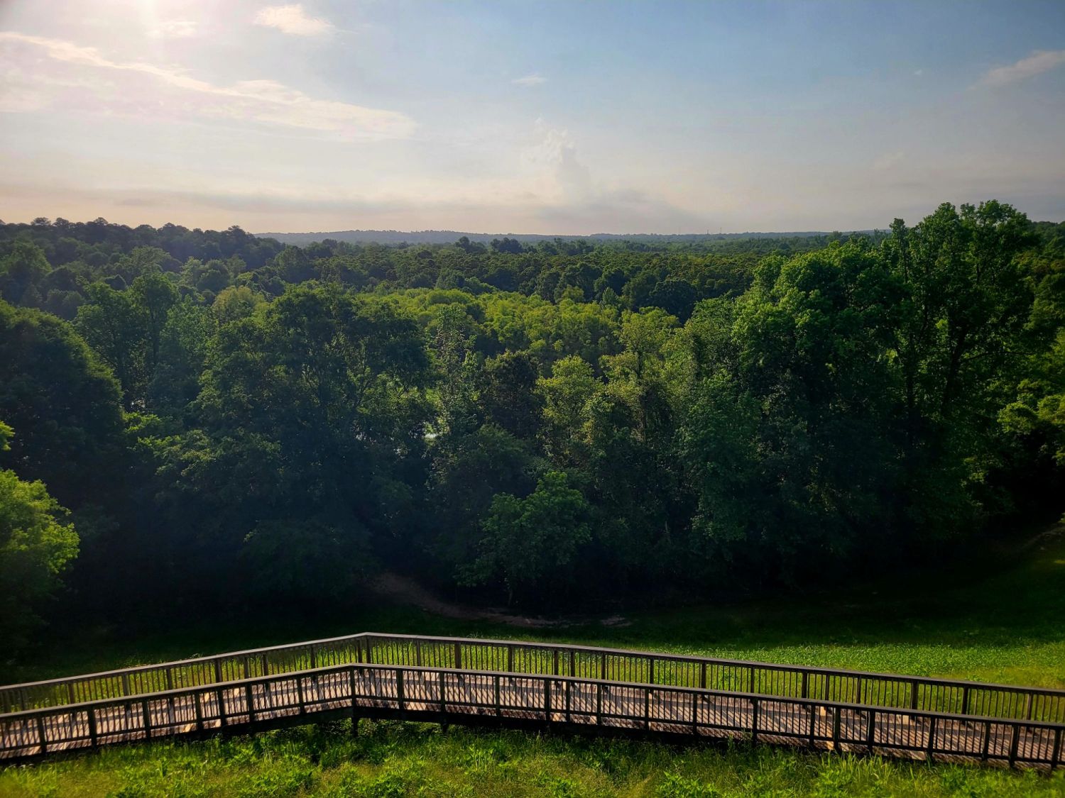 We will see a few whitetail deer, another larger turtle, a couple of Great White egrets, and some chipmunks while we walk between the Mounds. We’re able to go in the Earthlodge, and I’m grateful to see history through the glass as I listen to more modern advancements chug along through the park. I saw the cliff signs and still acted surprised when I saw the train tracks.