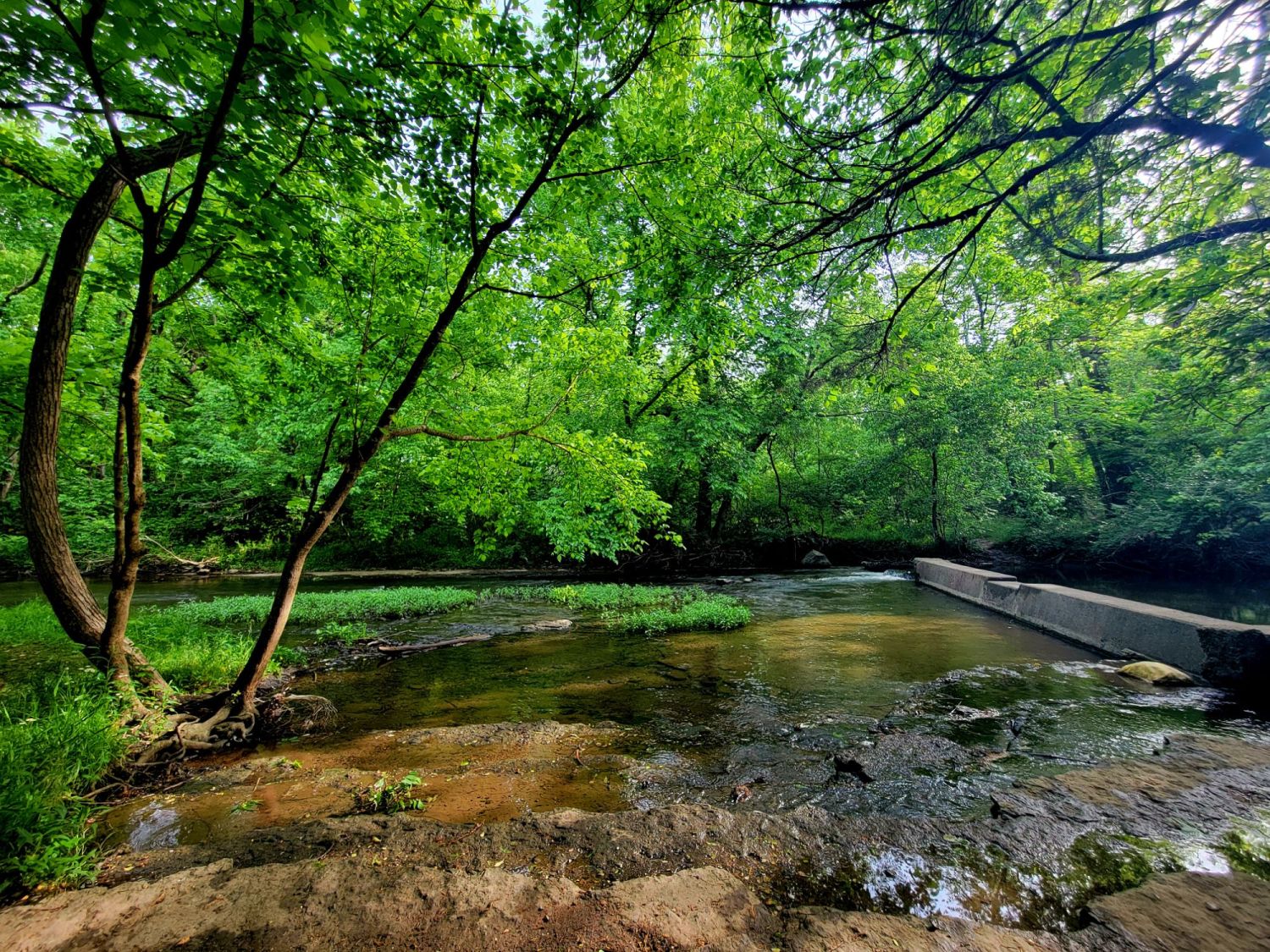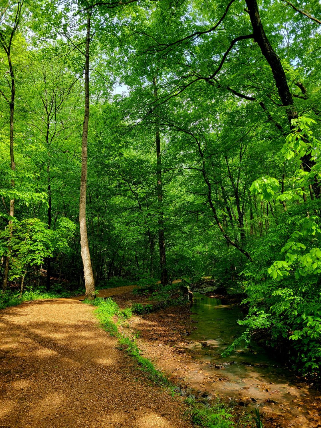 I’m glad we set so many days to get across as we hit a slowdown that would take us 30 minutes to drive the five miles to the Illinois border. It will be another half hour until we reach Ferne Clyffe State Park with a few spots to accommodate our length. We are interested in the waterfall and grateful for the wide and absorbent path that led us to it, along with an old man and his 10yo dog Ruby.