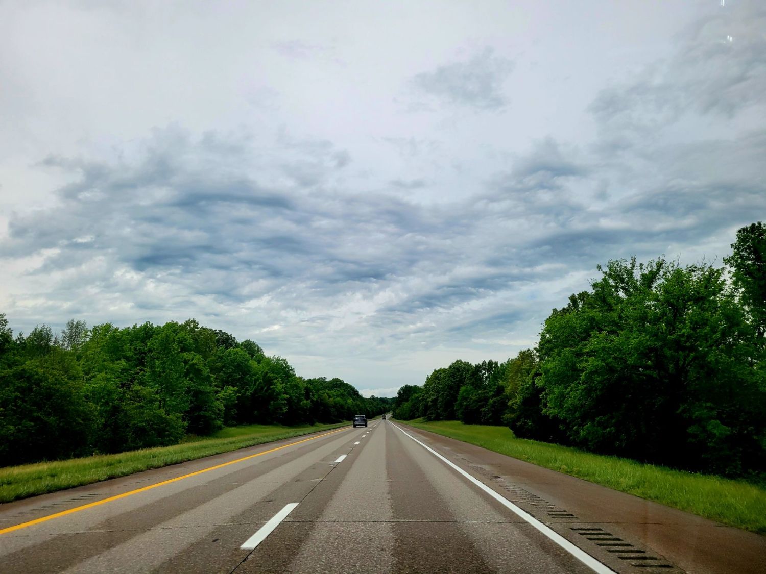 I feel a sense of renewed energy when I see the sun hit a field of flowers, especially after a day of driving under gray skies. I might’ve kept going had it not been time to eat, and then it would have been too dark to continue, so we stopped and got a new hitch to raise the trailer and more straps (one that’s not torn in half) to fix the contents situation. The Kaleb working there says his other job spelled his name Kalub, which looks phonetically correct.