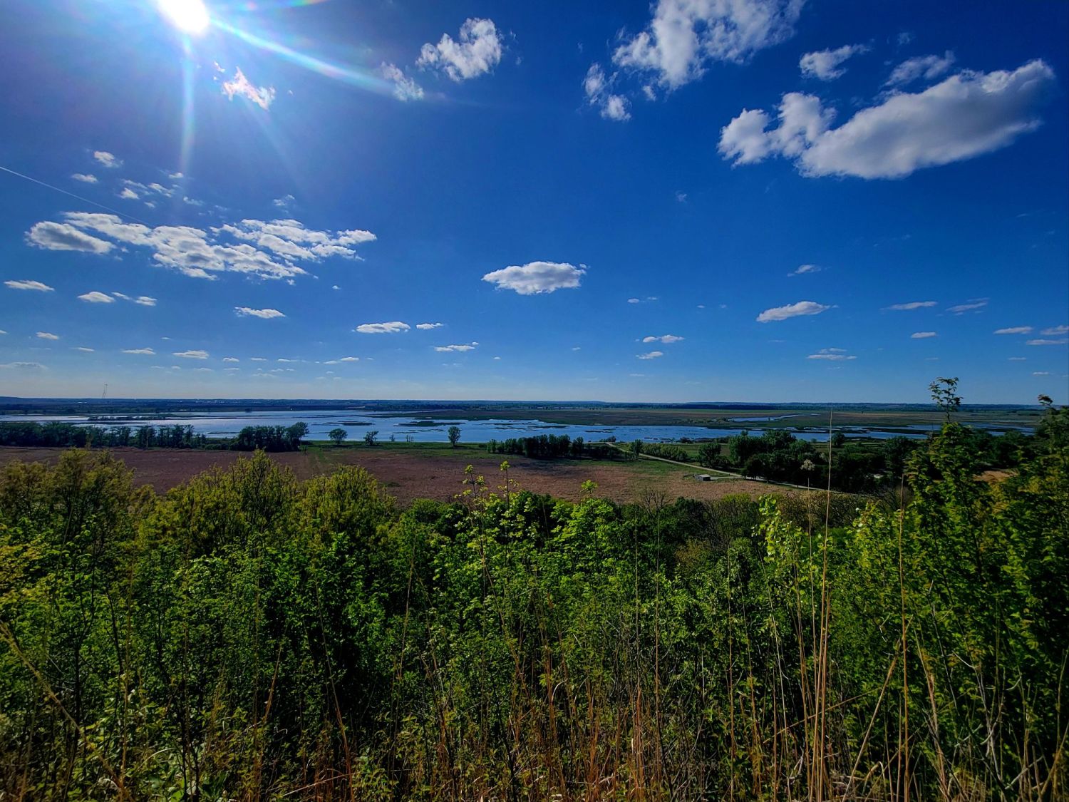 The road has perceivably no turns as we drive over 200 miles to Loess Bluff NWR, where the temperature is 66°F and I can take my hoodie off. I had planned on stopping at the Nelson-Atkins Museum of Art in Kansas City, but again, we were late, and the parking situation seemed impossible, so we bypassed it for a park with a driving tour. Caleb couldn’t confirm if it was a dirt road, though, so we gladly enjoyed a hike with a view.