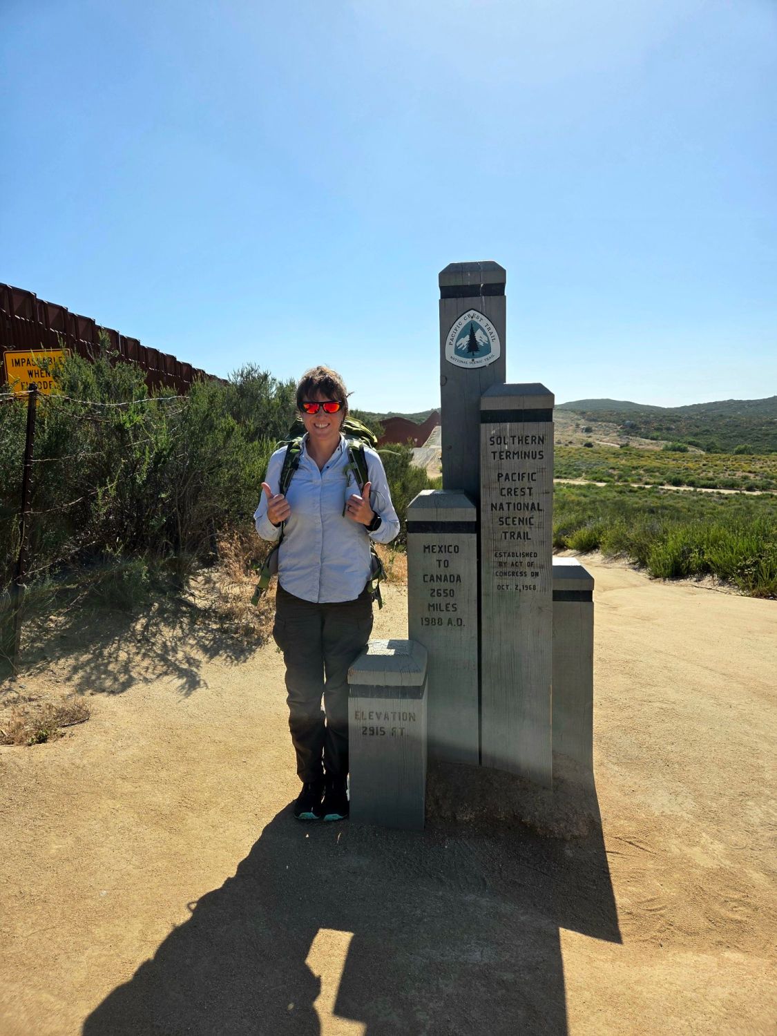 We flew to San Diego, took the Flyer van to the Old Town Transit station, and the shuttle van with Just Paul as our guide, who would take seven of us to the southern terminus about a half mile from Camp Lockett, where we would spend the night. We checked our bags with tent stakes and carried our bear cans with our lithium battery headlamps.