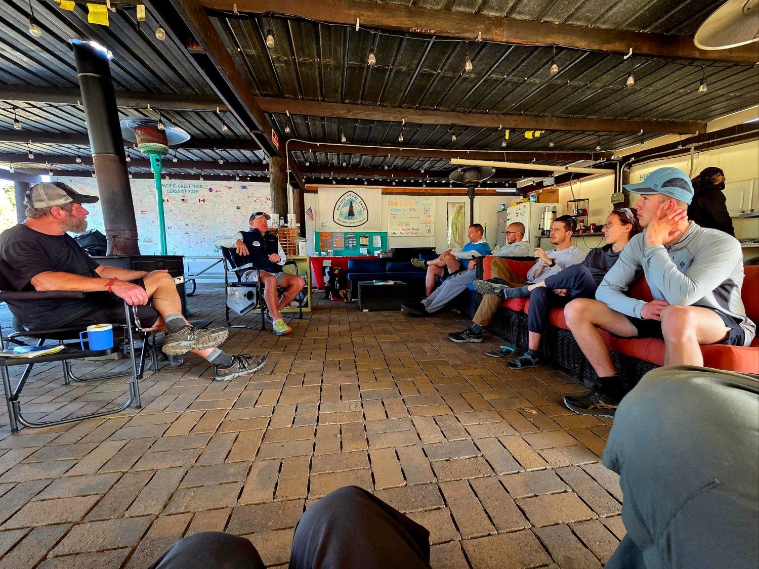 We listen to the main trail health issues (heat illness, hypothermia, and altitude sickness), hitchhiking protocols (don’t forget your bag), and the importance of maintaining water levels (Don’t die!) throughout from Just Paul, One Speed and Papa Bear who promises us pancakes in the morning. I fall asleep to the sound of barking dogs, people partying at the equestrian center, gunfire in the distance, possibly a loud bat, and some snoring.