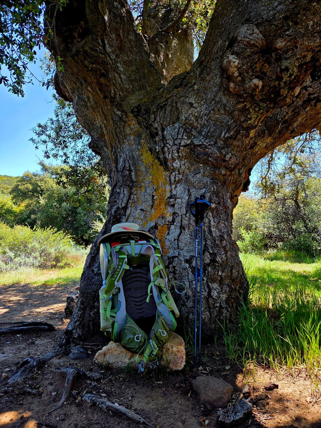 Today will have us leaving camp at 8am, about five minutes behind our trail family, with my body at a 6 out of 10. I see a California kingsnake but the non-venomous ones are usually in a hurry to escape or perhaps don’t care that I want a picture of them and are going about their day. I didn’t feel the same need for the rattler hiding in the bush but I did bother getting a peek at one of them.