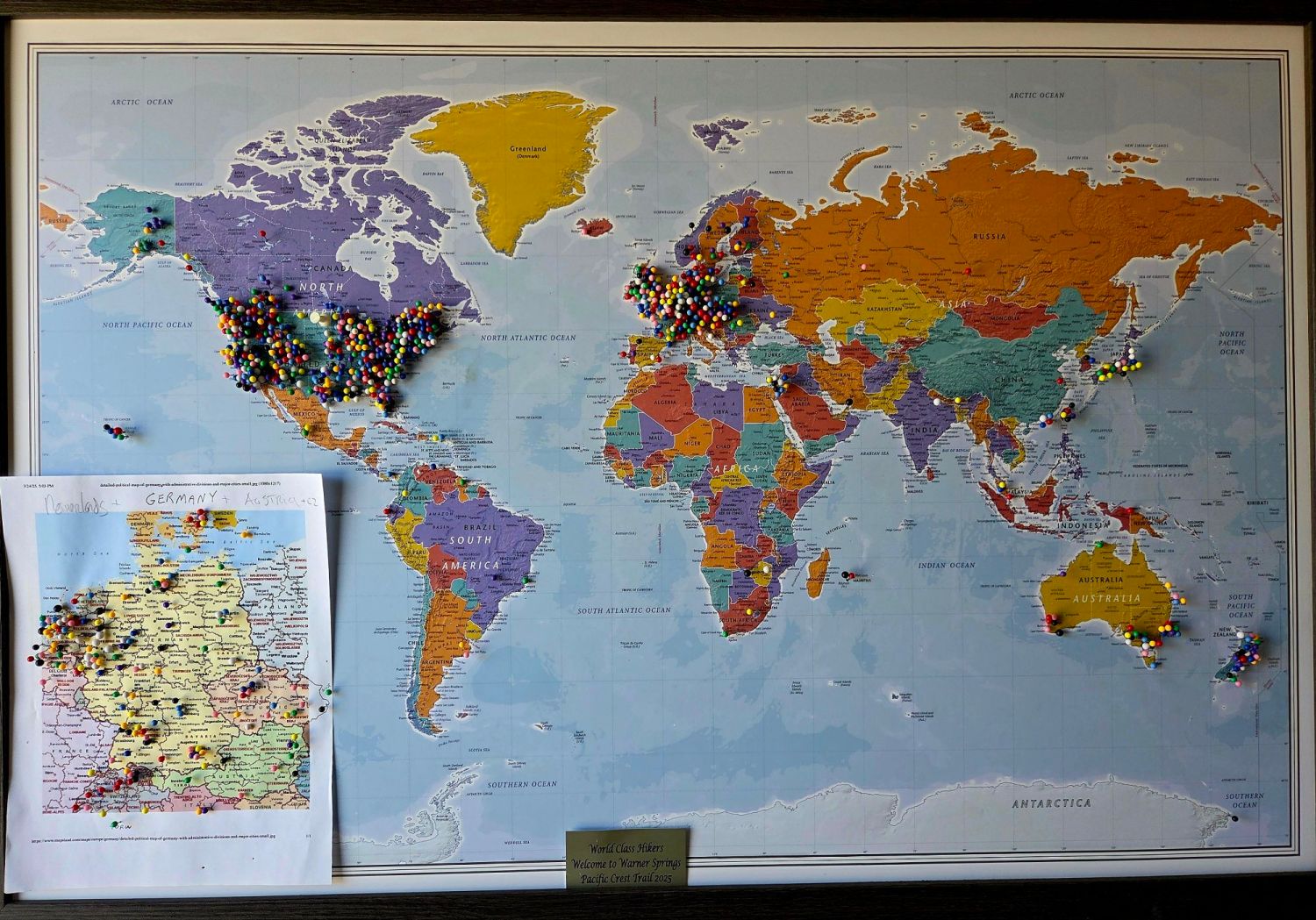 The woman points us to a hiker box, a sign of a PCT-friendly business, but we are not in need of what’s inside especially the wrong-sized shoes. We see that Gert signed the hiker log two days ago so we are not far behind our trail family. We are putting our bags on for the one-mile return to the car when a woman pulls in and tells us to get in her car. She was that direct.