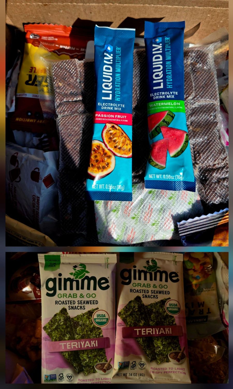 We say hi to Trailer Park in the room and knock on Ravi’s door, who arrives while we are gone, but there is no answer. We emptied a few boxes of our resupply food into cheap trash bags because the few shops we stopped at, with durable ones in use, weren’t handing them out. This helps us go through what we have and donate some freeze-dried Skittles to our tramily (trail family) and a hiker box.