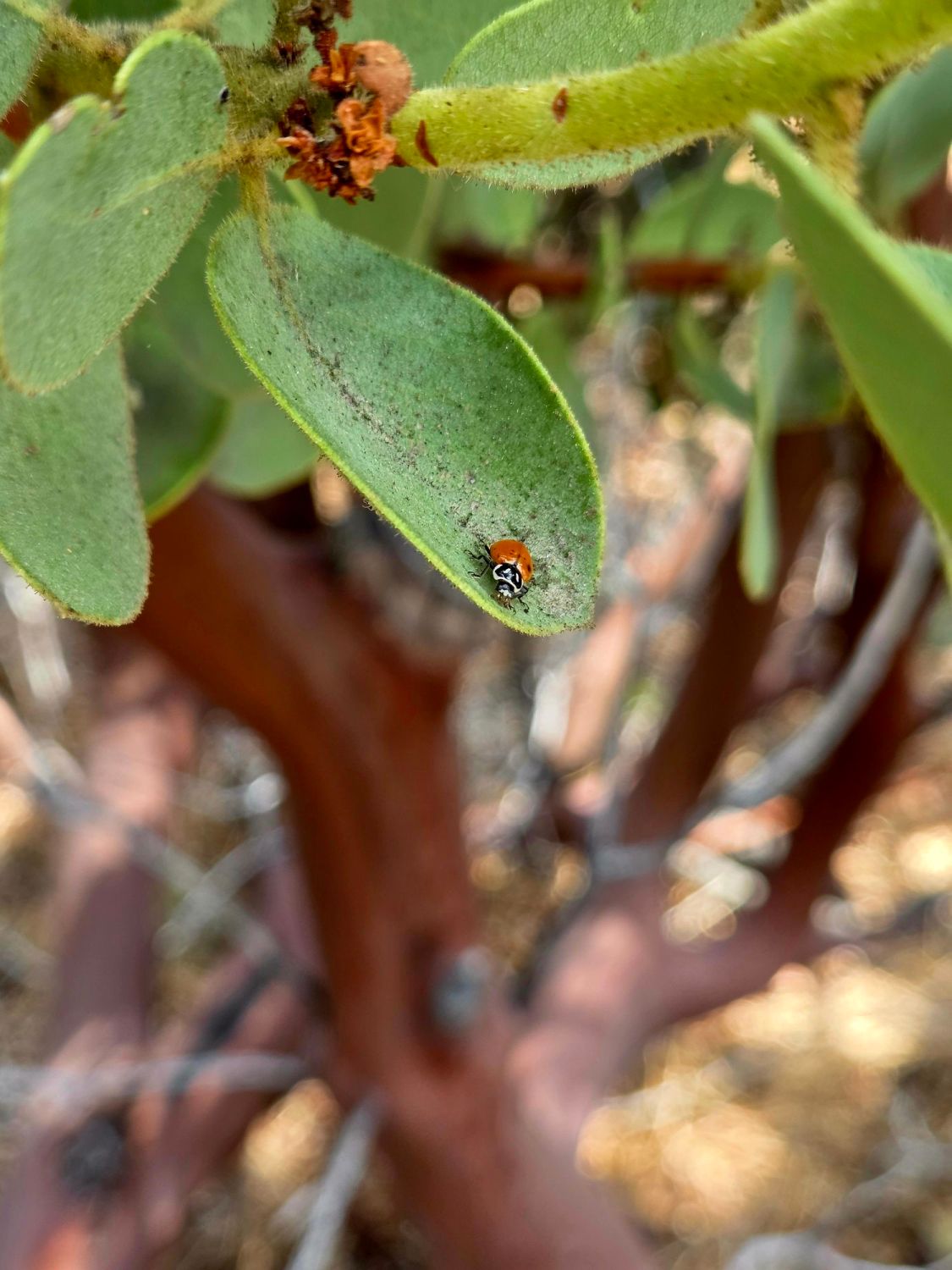 The fence lizards and one California sister butterfly are enjoying the sunny rocks as our legs take a beating from fighting the urge to take a shortcut – jump off the edge and let gravity have us – as the sun starts to cook us. Rachel finds a rock to climb under and Ravi succumbs to the power of the sun and lets it soak in. Gert and I find some much-needed shade by noon but it’s not enough to nap under, so we must march on.