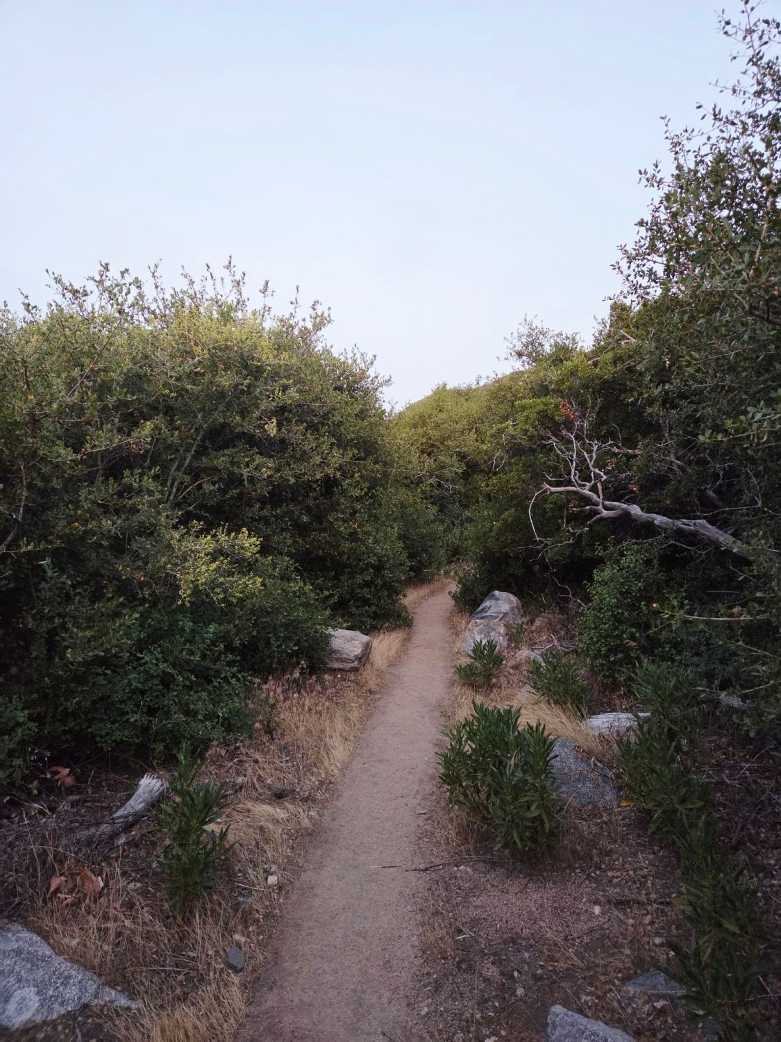The bushes are covered in webs waiting to hit my face if I don’t get them with my trekking poles first, and Gert is kind enough to remind me as it clears his path too. Yesterday’s incline was more gradual and the shadows longer. Gert has a cell signal and uses it to call work. He is leaving the trail after his wife comes because he’s answered the questions he brought with him.