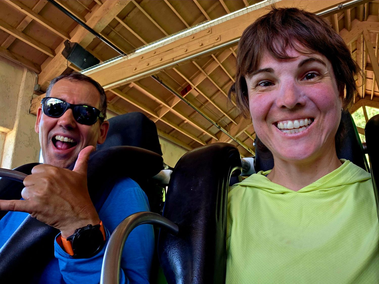 We are excited for the Twisted Colossus (so many fun facts about this ride), but some barf will take the car out, and there are two parked in the sun waiting to disembark. We watched them spray it down and towel dry it, but when the staff opened an exit gate, we took it. They would have to close the ride temporarily. I offered one more ride to Rachel as that’s all we had in us, but she was ready to leave too.