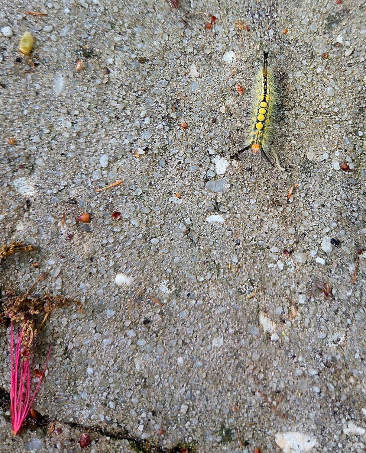 snail and white-marked tussock moth caterpillar