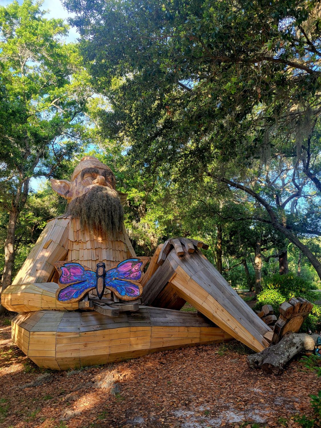 I’m not done taking pictures, though. We will drive the few miles to Boyd Hill Nature Preserve and pay the $3 each to walk along their six miles of trails through hardwood hammocks, freshwater swamps, and upland scrub. They have boardwalks and birds, and baby alligators near the water’s edge. We see a raccoon and a gopher tortoise along with a larger-than-life metallic armadillo. Being in nature is always a great way to spend the day and I’m glad that I feel more relaxed around trees than I do in a giant shrimp cocktail disco room.