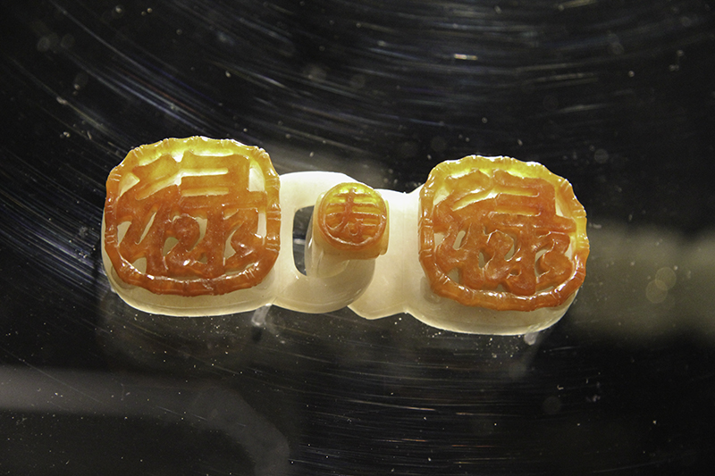There are decorated painted plates of birds and horses; sculptures in stone of humans and apes; long swords that are curvy and straight with fancy handles and sheaths; intricate artwork with metal and beads and tiny details; and scenes carved in jade of all colors on dishes for holding food and water. There are many new styles, textures, and stain mixtures that were made over 700 years ago – and plenty of it in this museum. There is wood, metal, rock, glass, paint, and fiber that has gone into expressing the zeitgeist of the ages that have built up to the making and filling of these rooms.