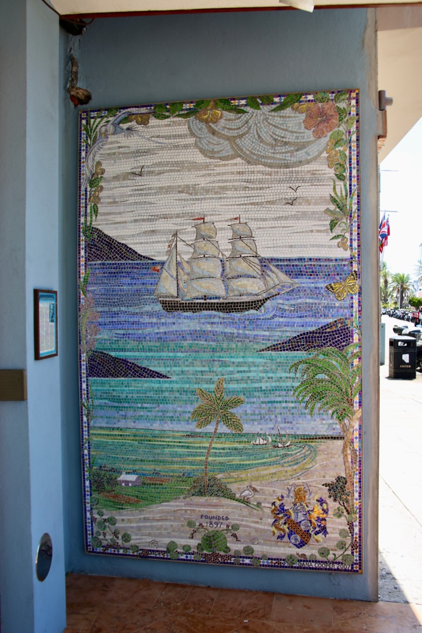 We are moored at the Royal Bermuda Yacht Club, so I feel free to explore inside. There is a trophy from the third Duchess of Edinburgh, who became the Queen of the United Kingdom for 70 years, to the club for their racing in 1948. There’s a cabinet full of silver trophies and inscribed plates, along with boat pictures and parts on the walls. The club was established in 1844 and added “Royal” to their name two years later. It’s the third oldest ‘Royal’ club outside the British Isles.