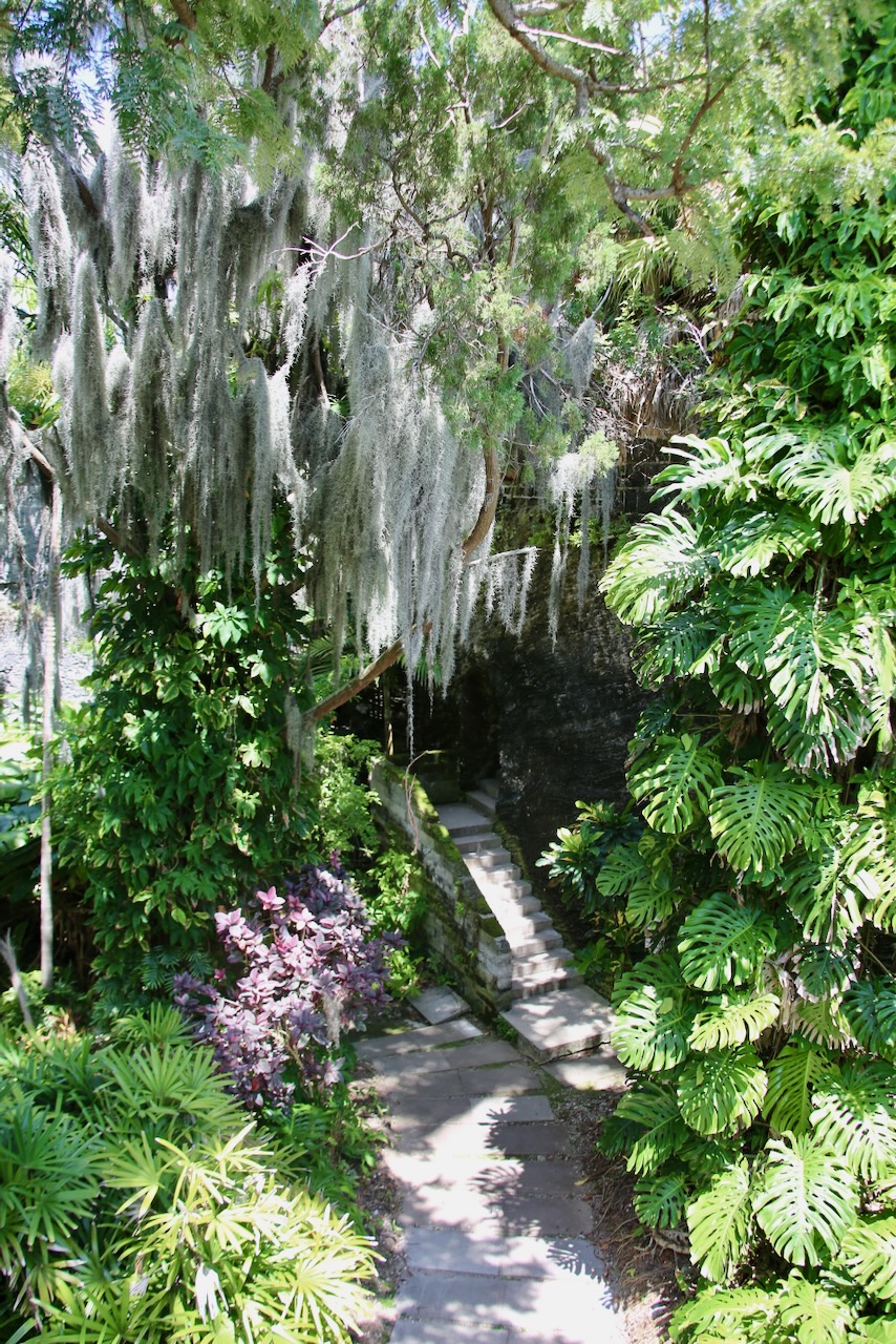 The gardens were established in 1898 and consist of 36 acres that include a palm garden, a subtropical fruit garden, and a sensory garden for the blind. There are greenhouses, the Camden House (the official residence of the Bermuda Premier – a political position), and the Masterworks Museum of Bermuda Art. We park and walk past the Jack King Building (so named for his husbandry and exhibition of poultry in Bermuda) into the west side of the gardens.