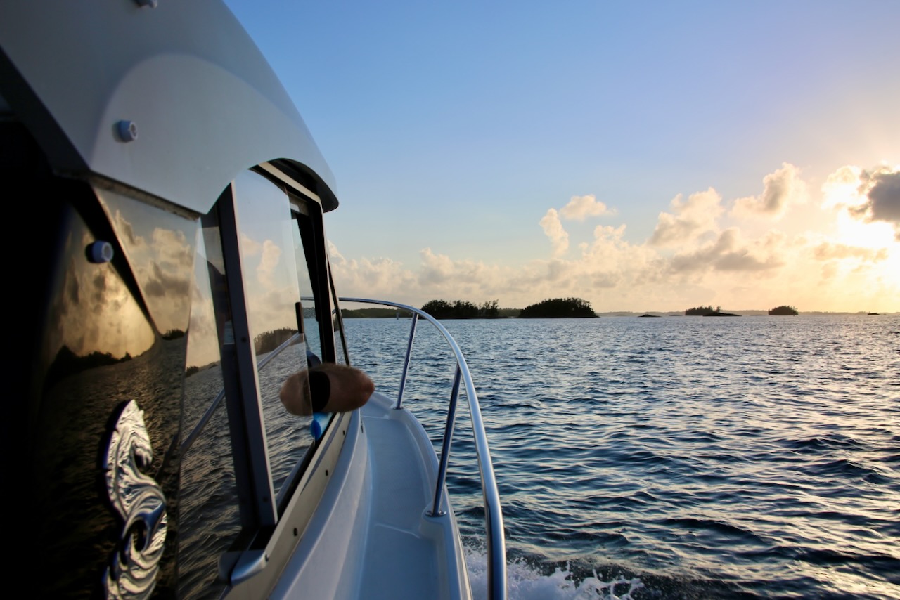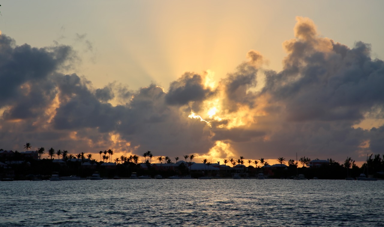 We get back on the boat after a long afternoon and have a lemon pie awaiting us (not sure from who or where) and an amazing sunset, too. The boat gets stopped by police for speeding and having no registration number, and Dean clears that up. The seas become restless as the sun disappears, and we return to the marina as the darkening clouds start to cover a blue sky that refuses to lose brightness on a faster schedule. I covered downtown Hamilton on foot and will have no trouble closing my eyes as soon as I touch the couch for the evening.